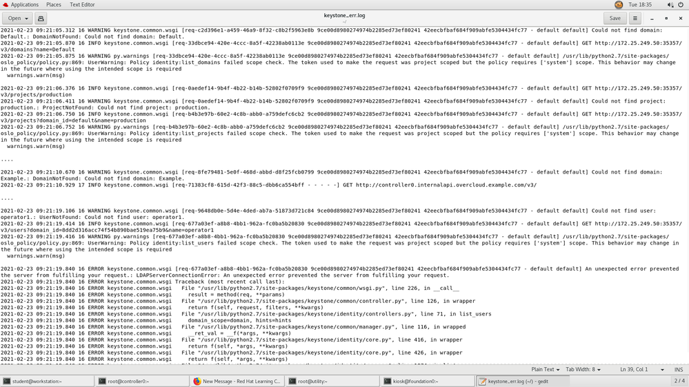 In the Workstation system, I ran "lab script" failed because keystone( Idm service )