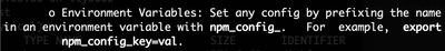 For example, you might be using NPM, and you might have to do something with ENV variables. Well, a quick scan of man npm tells you the following: