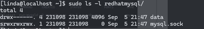 Just for curiosity I checked the contents of /home/linda/redhatmysql:/var/lib/mysql directory: