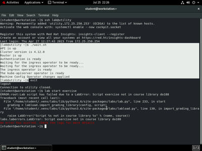 ERROR:root:Lab Script has failed due to a LabError: Script exercise not in course library do188.