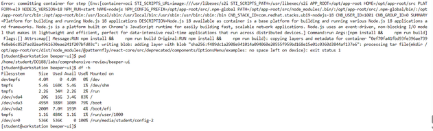 If i don't manage to build beeper-ui image succesfully the first time and made some mistake and have to go back, this directory /run/media/student/config-2 utilizes at 100% and this prevents me from building the image again