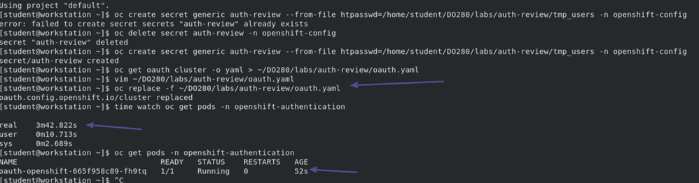$ oc delete pod -n openshift-auththentication -l app=authentication