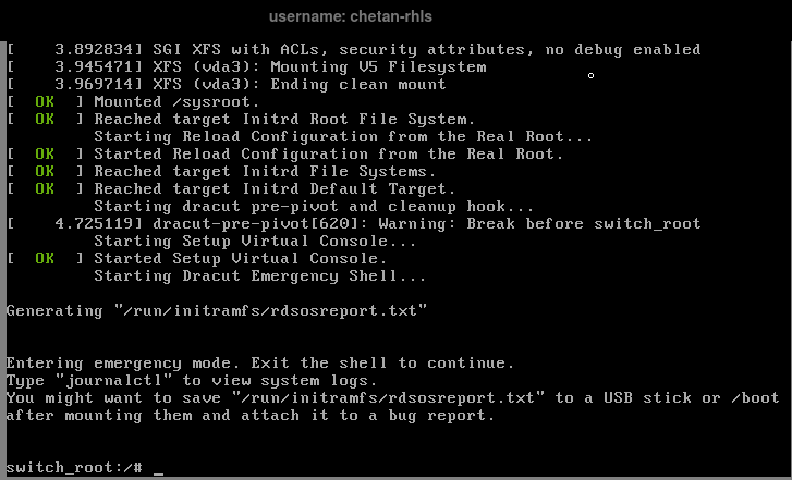 Adding rd.break to kernel line to reset root password blocks at Probing EDD