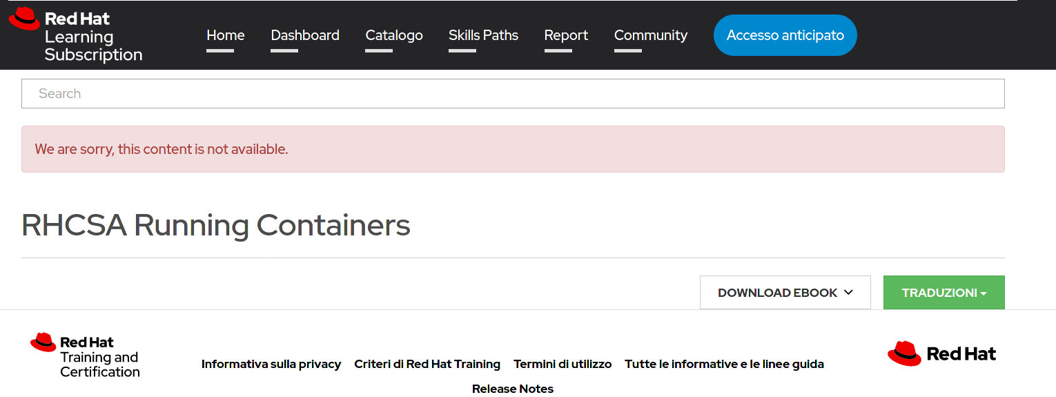 Red Hat System Administrator: Running Containers (RHCSA650E) is now available for individual consumption by Red Hat Training. In order to access this content, please take the following steps: