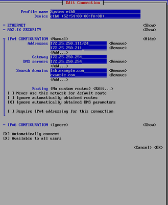 Send me a screenshot of your "static" configuration from nmtui, please.